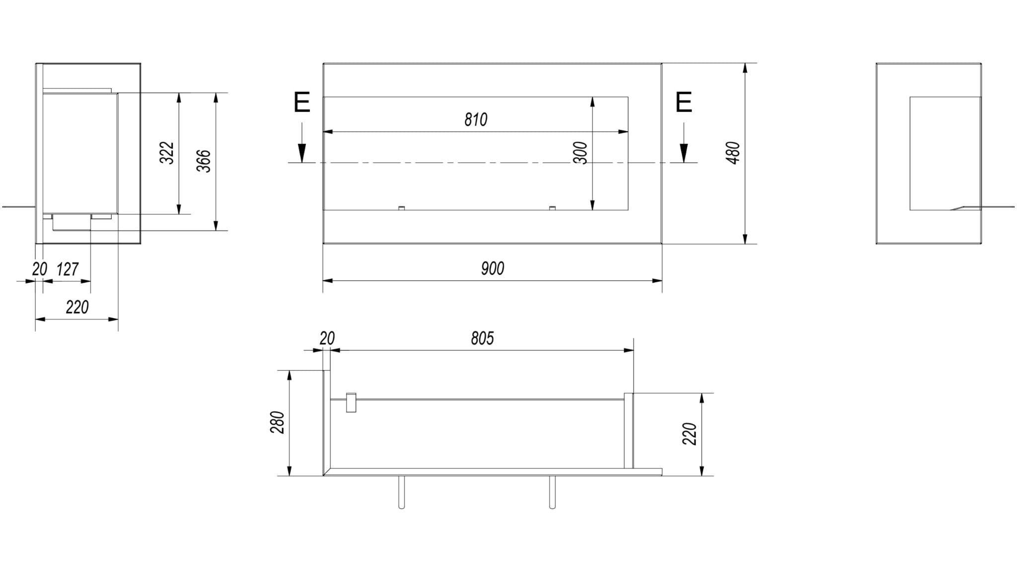 - narożny / indywidualna zabudowa: można zamontować we wnęce lub na specjalnie zbudowanym do tego celu elemencie dekoracyjnym wystającym ze ściany. Dylatacja: bezpieczna odległość od ściany (1,5 cm) pozwala na obieg powietrza wokół biokominka, bez dodatkowych listew montażowych.