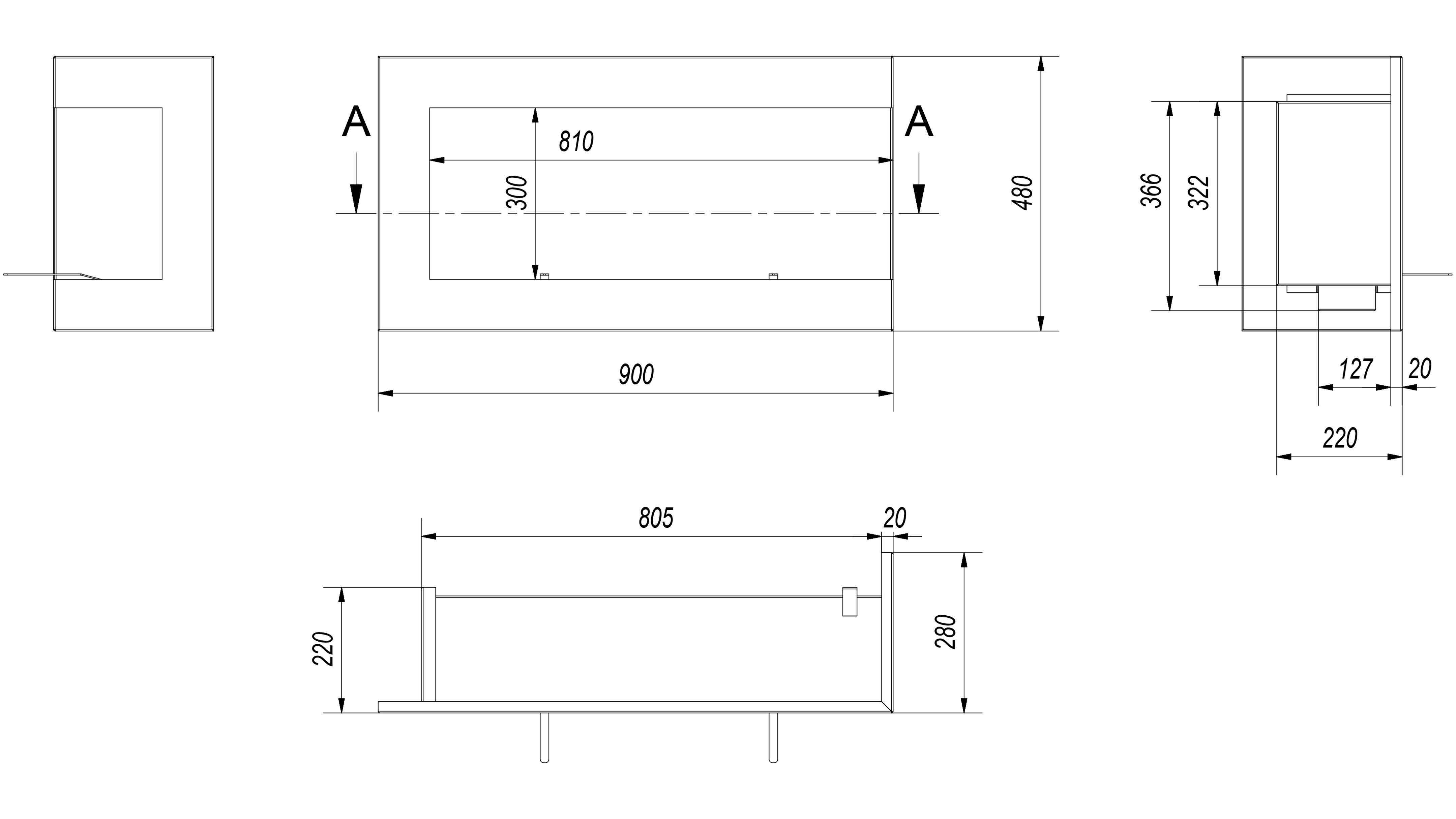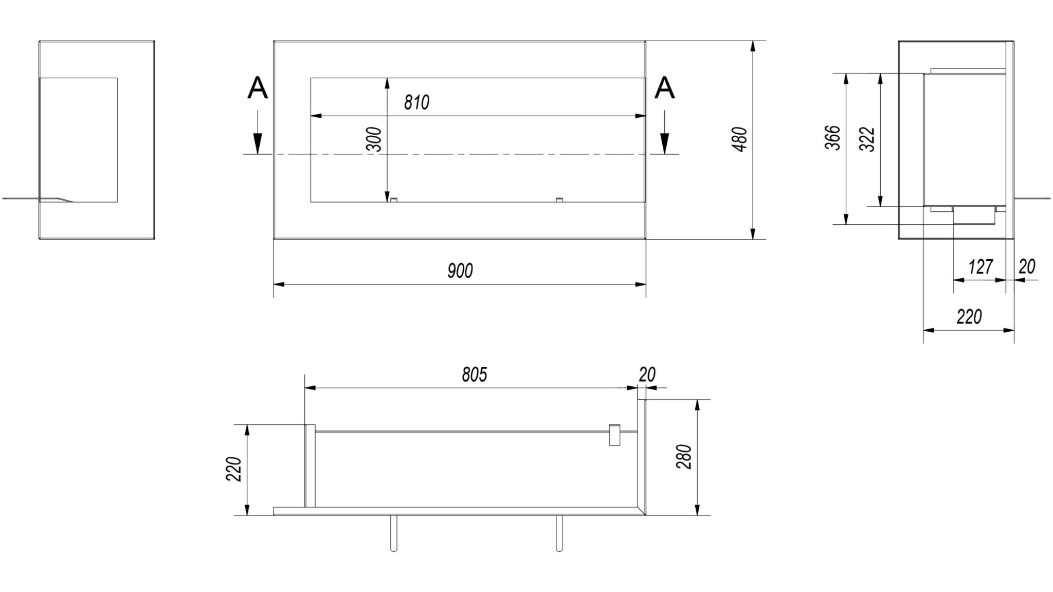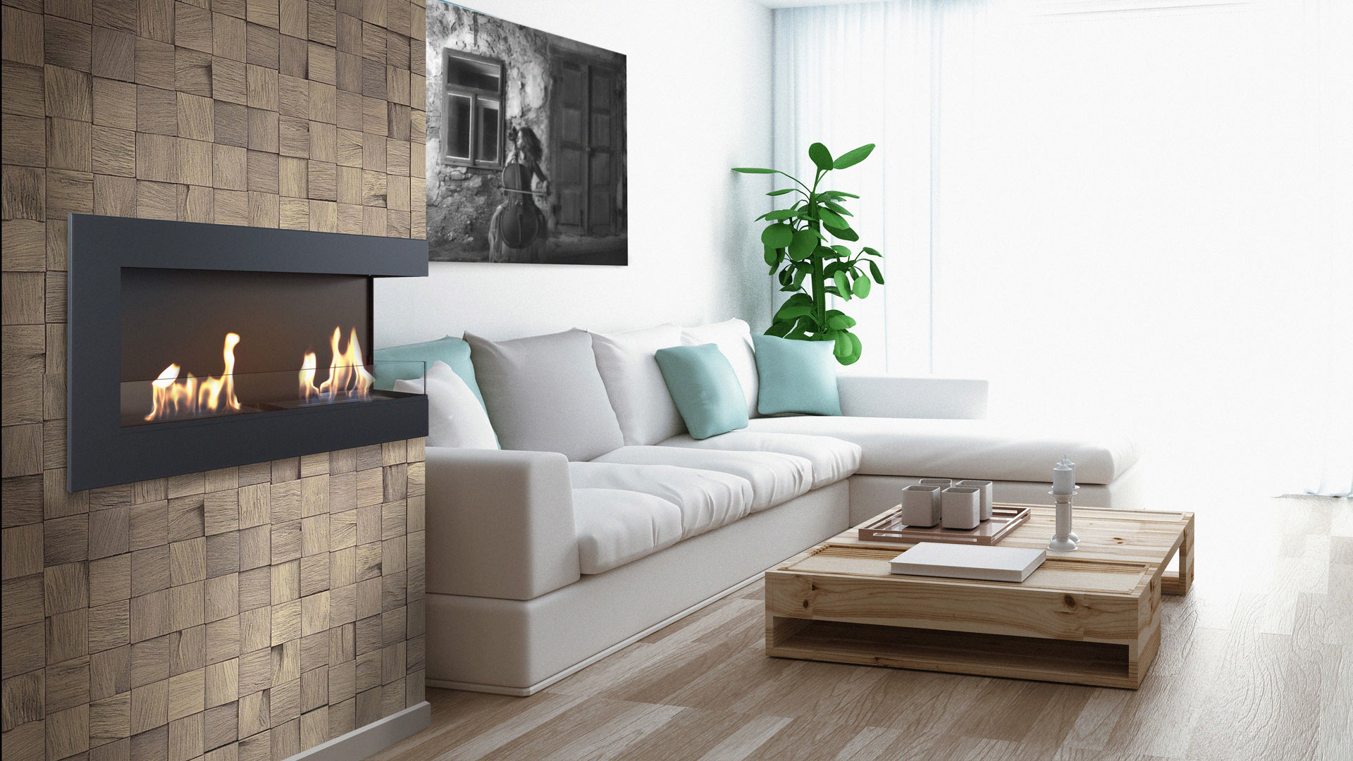 - narożny / indywidualna zabudowa: można zamontować we wnęce lub na specjalnie zbudowanym do tego celu elemencie dekoracyjnym wystającym ze ściany. Dylatacja: bezpieczna odległość od ściany (1,5 cm) pozwala na obieg powietrza wokół biokominka, bez dodatkowych listew montażowych.
