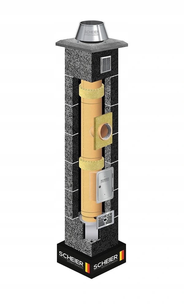 Systemy kominowe Scheier to nowoczesne, pierwsze i w pełni kompletne systemy kominowe gwarantujące niezawodne działanie oraz bezpieczeństwo ich użytkowników. Zastosowane w systemach rozwiązania powstały w oparciu o najnowszą wiedzę i ciągle rosnące potrzeby rynku. Systemy kominowe Scheier posiadają europejski certyfikat CE. Zastosowane wkłady ceramiczne w klasie A1N1 T600 niemieckiego koncernu P-D Refractories gwarantują odporność na pożar sadzy nawet do 60 min.