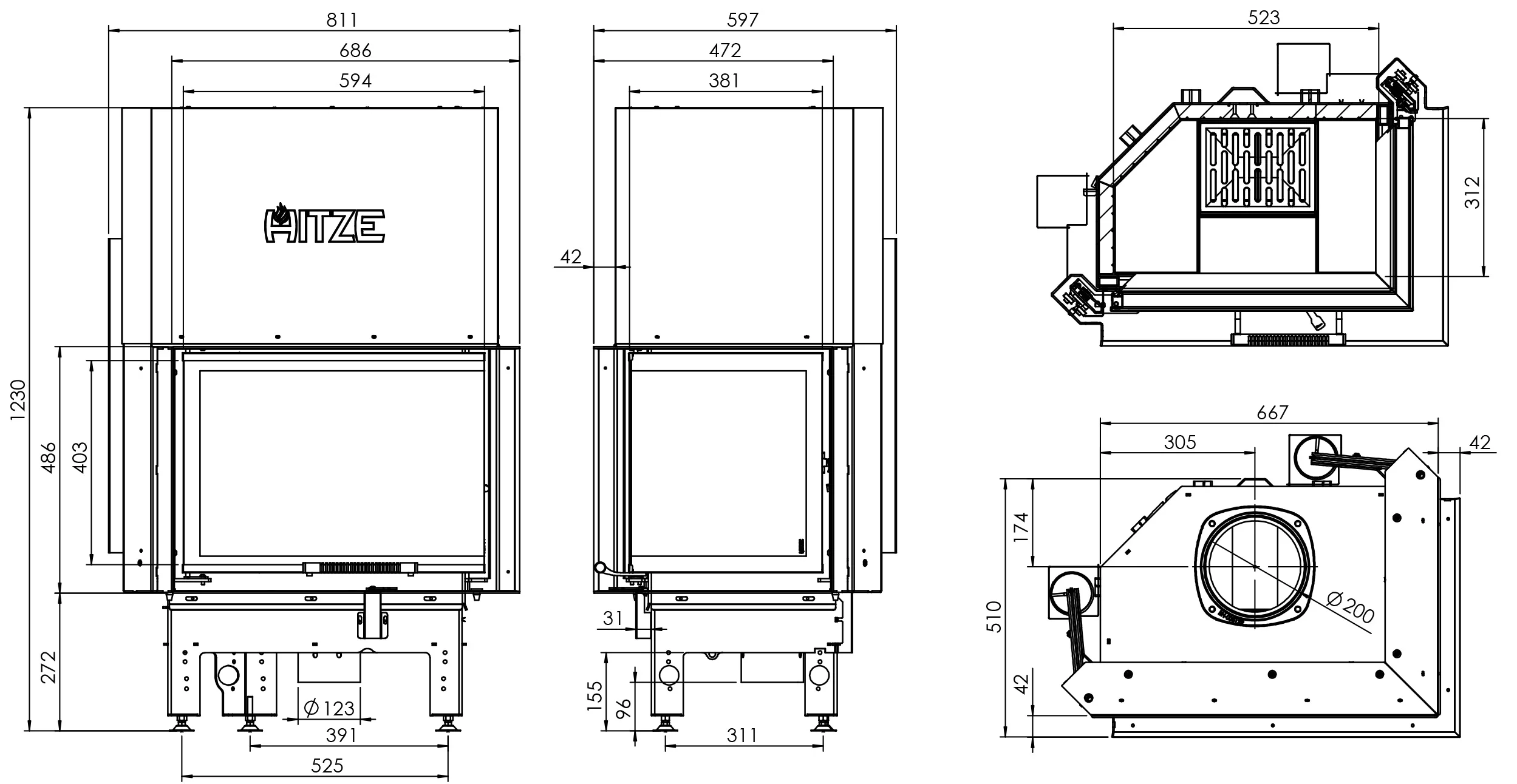 | Średnica wylotu spalin (mm) | 200 |