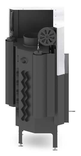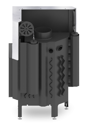 - Specjalnie zaprojektowana tylna część korpusu umożliwia doprowadzenie powietrza wtórnego do górnej części paleniska. Umożliwia podniesienie sprawności urządzenia poprzez dopalanie spalin.