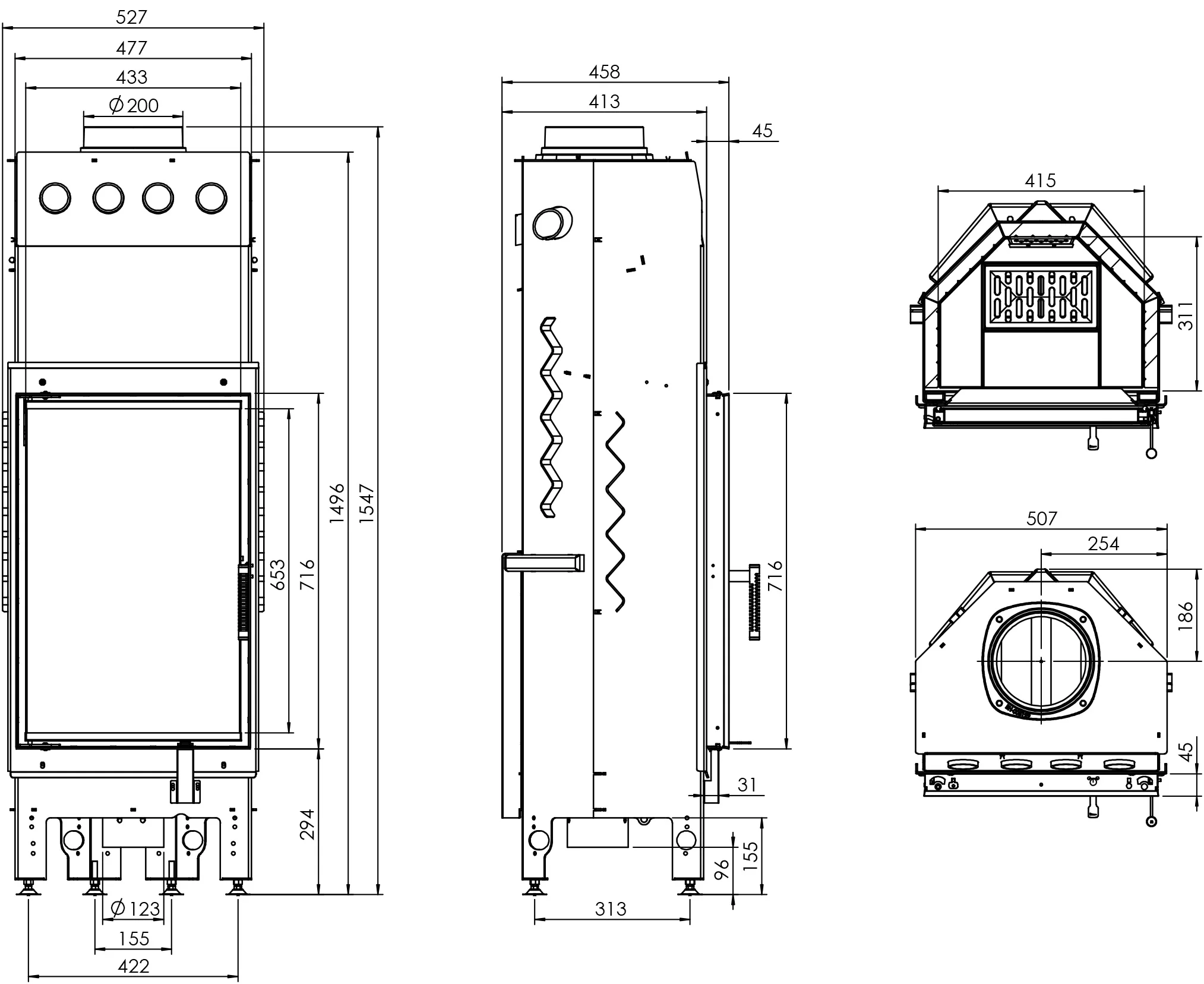 | Średnica wylotu spalin (mm) | 200 |