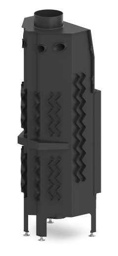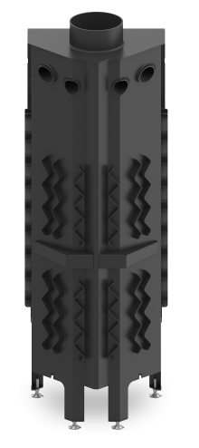 - Specjalnie zaprojektowana tylna część korpusu umożliwia doprowadzenie powietrza wtórnego do górnej części paleniska. Umożliwia podniesienie sprawności urządzenia poprzez dopalanie spalin.