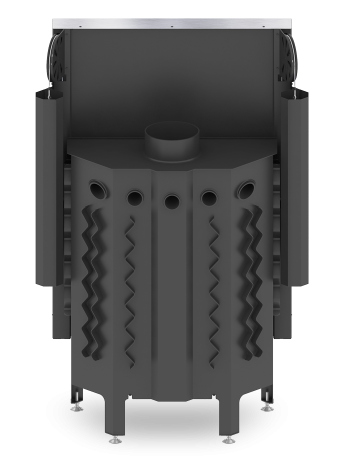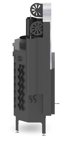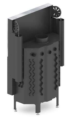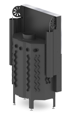 - Specjalnie zaprojektowana tylna część korpusu umożliwia doprowadzenie powietrza wtórnego do górnej części paleniska. Umożliwia podniesienie sprawności urządzenia poprzez dopalanie spalin.