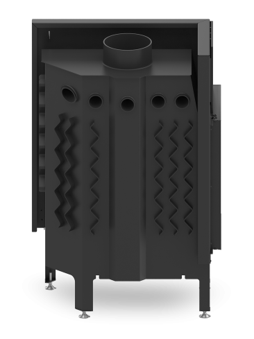 - Specjalnie zaprojektowana tylna część korpusu umożliwia doprowadzenie powietrza wtórnego do górnej części paleniska. Umożliwia podniesienie sprawności urządzenia poprzez dopalanie spalin.