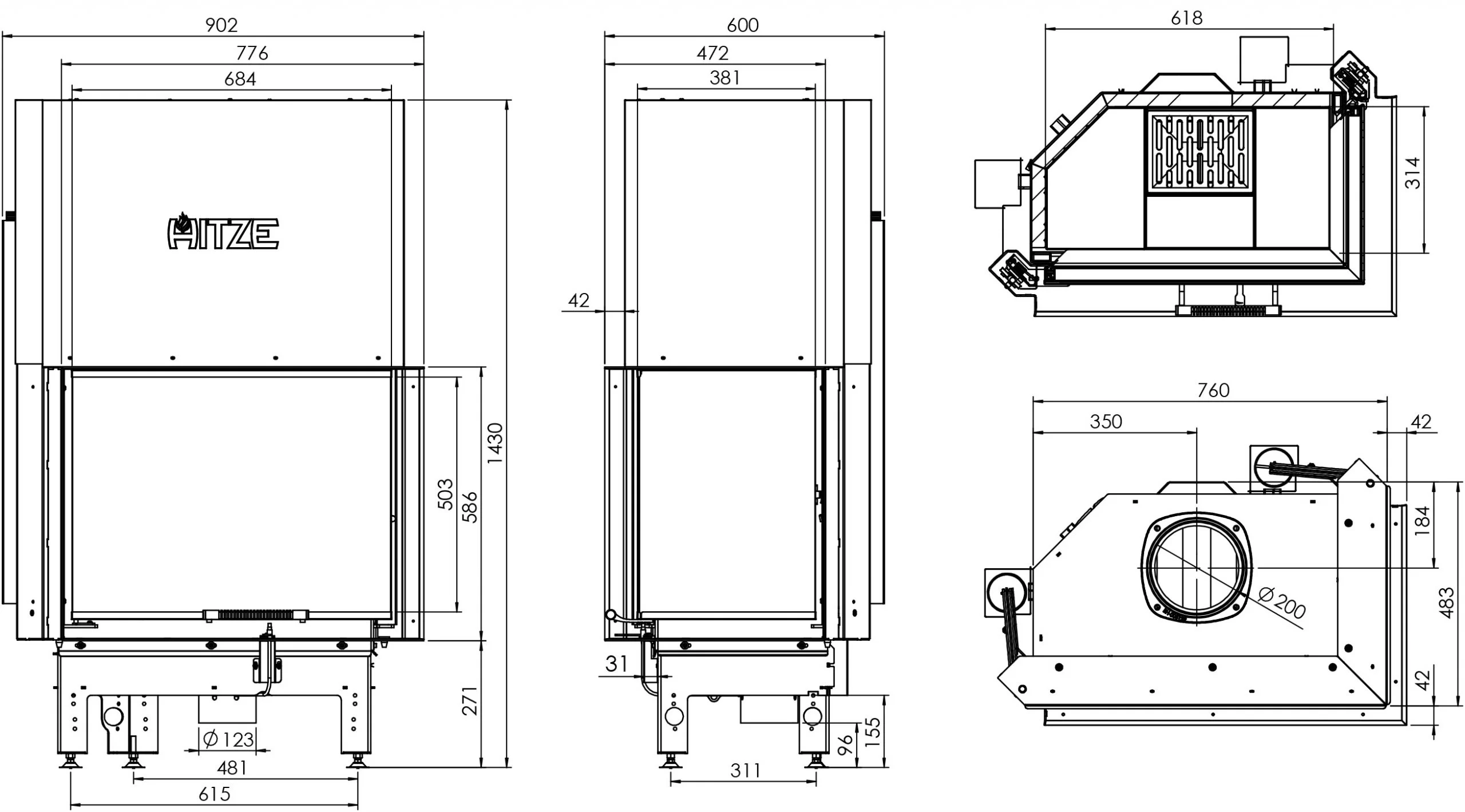 | Średnica wylotu spalin (mm) | 200 |