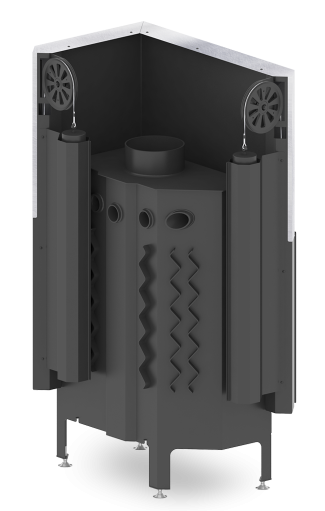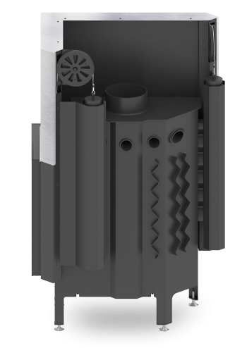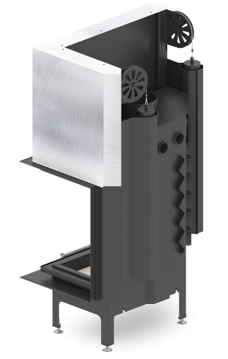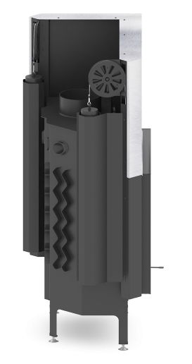 - Specjalnie zaprojektowana tylna część korpusu umożliwia doprowadzenie powietrza wtórnego do górnej części paleniska. Umożliwia podniesienie sprawności urządzenia poprzez dopalanie spalin.