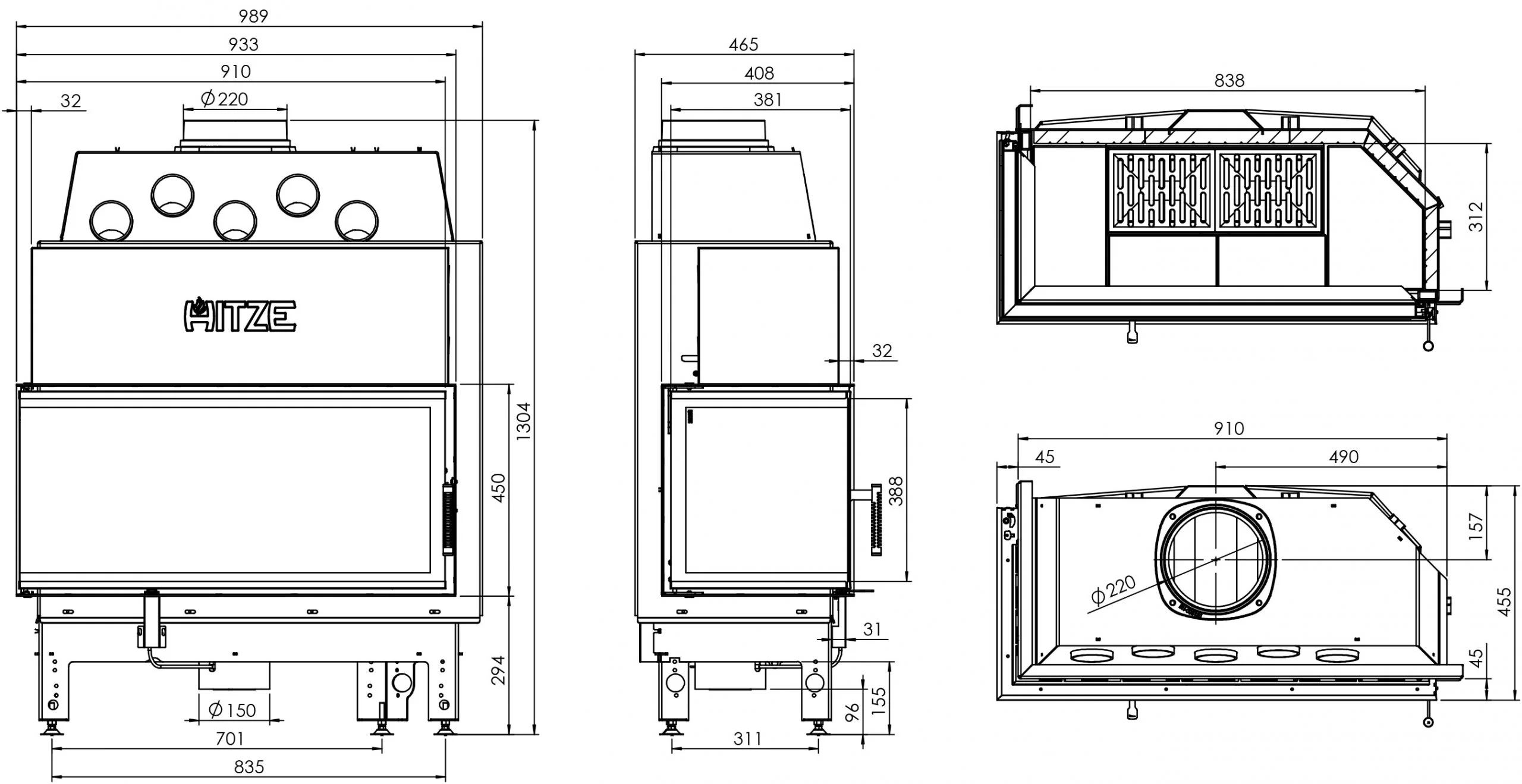 - Podstawa stalowa wkładu wyposażona jest w przepustnicę dolotu zimnego powietrza zewnętrznego, standard.
