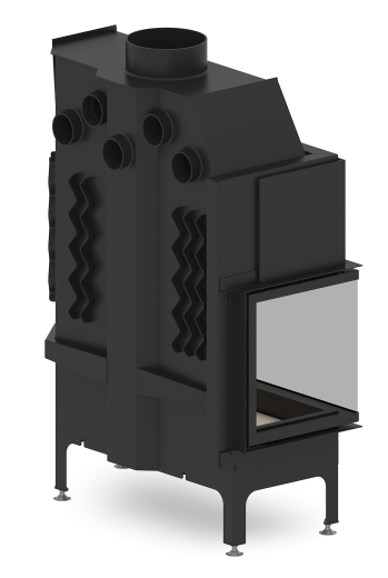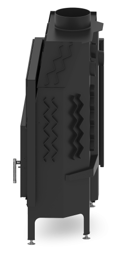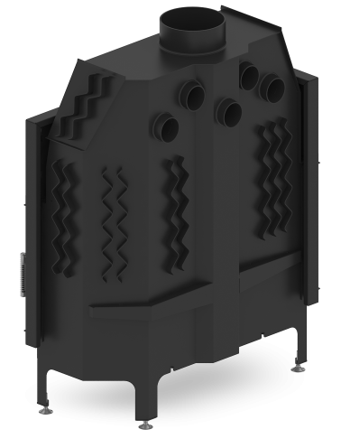 - Specjalnie zaprojektowana tylna część korpusu umożliwia doprowadzenie powietrza wtórnego do górnej części paleniska. Umożliwia podniesienie sprawności urządzenia poprzez dopalanie spalin.