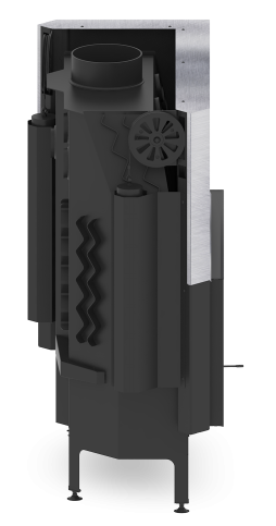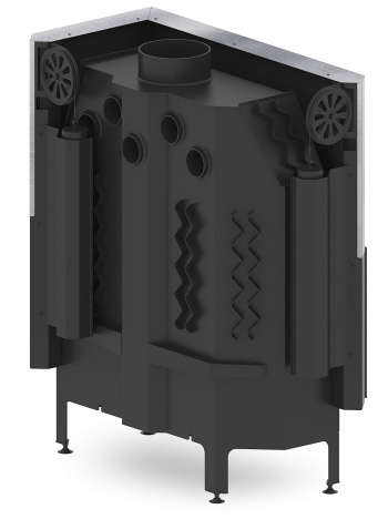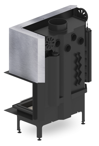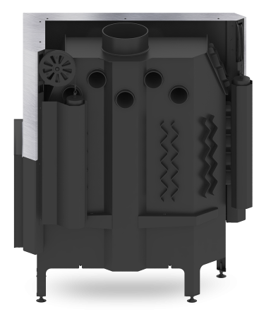 - Specjalnie zaprojektowana tylna część korpusu umożliwia doprowadzenie powietrza wtórnego do górnej części paleniska. Umożliwia podniesienie sprawności urządzenia poprzez dopalanie spalin.