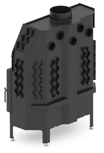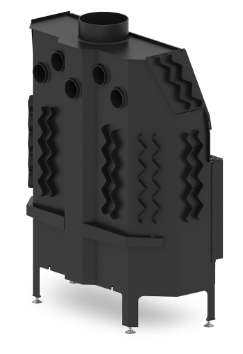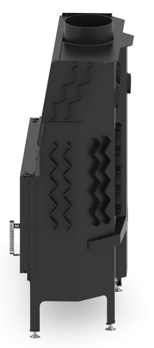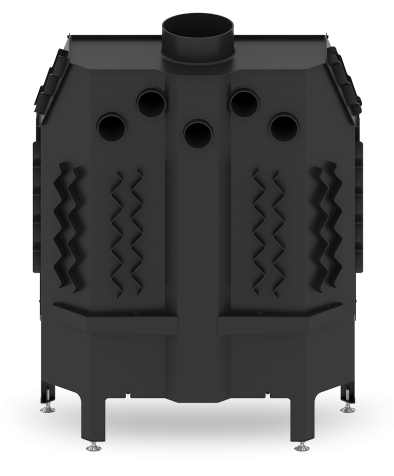 - Specjalnie zaprojektowana tylna część korpusu umożliwia doprowadzenie powietrza wtórnego do górnej części paleniska. Umożliwia podniesienie sprawności urządzenia poprzez dopalanie spalin.