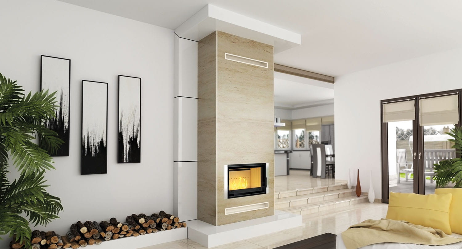 Kominki Albero generują optymalną ilość ciepła przy ekonomicznym spalaniu drewna. Odpowiedzialne są za to innowacyjne rozwiązania, takie jak wkład z betonu ceramicznego o odporności na temperatury do 1000°C, który skupia ciepło oraz specjalne deflektory, podwyższające temperaturę wewnątrz komory. Na ponadprzeciętnie wysoką wydajność wkładu kominkowego wpływ ma również sześciokątna komora spalania – poprzez zmniejszenie kubatury paleniska zwiększono temperaturę. W ten sposób łatwo uzyskać optymalne ciepło w domu, bez ryzyka przegrzań pomieszczeń.