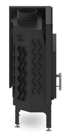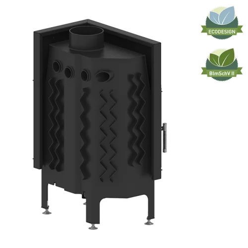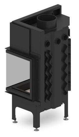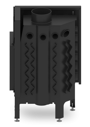 - Specjalnie zaprojektowana tylna część korpusu umożliwia doprowadzenie powietrza wtórnego do górnej części paleniska. Umożliwia podniesienie sprawności urządzenia poprzez dopalanie spalin.