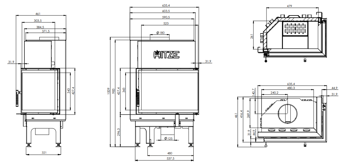 - Podstawa stalowa wkładu wyposażona jest w przepustnicę dolotu zimnego powietrza zewnętrznego, standard.