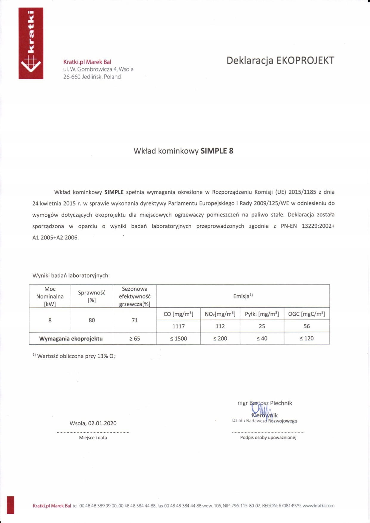 Urządzenie spełnia wymagania Ekoprojektu oraz normy BImSchV 2, wyznaczającej maksymalną emisję CO.