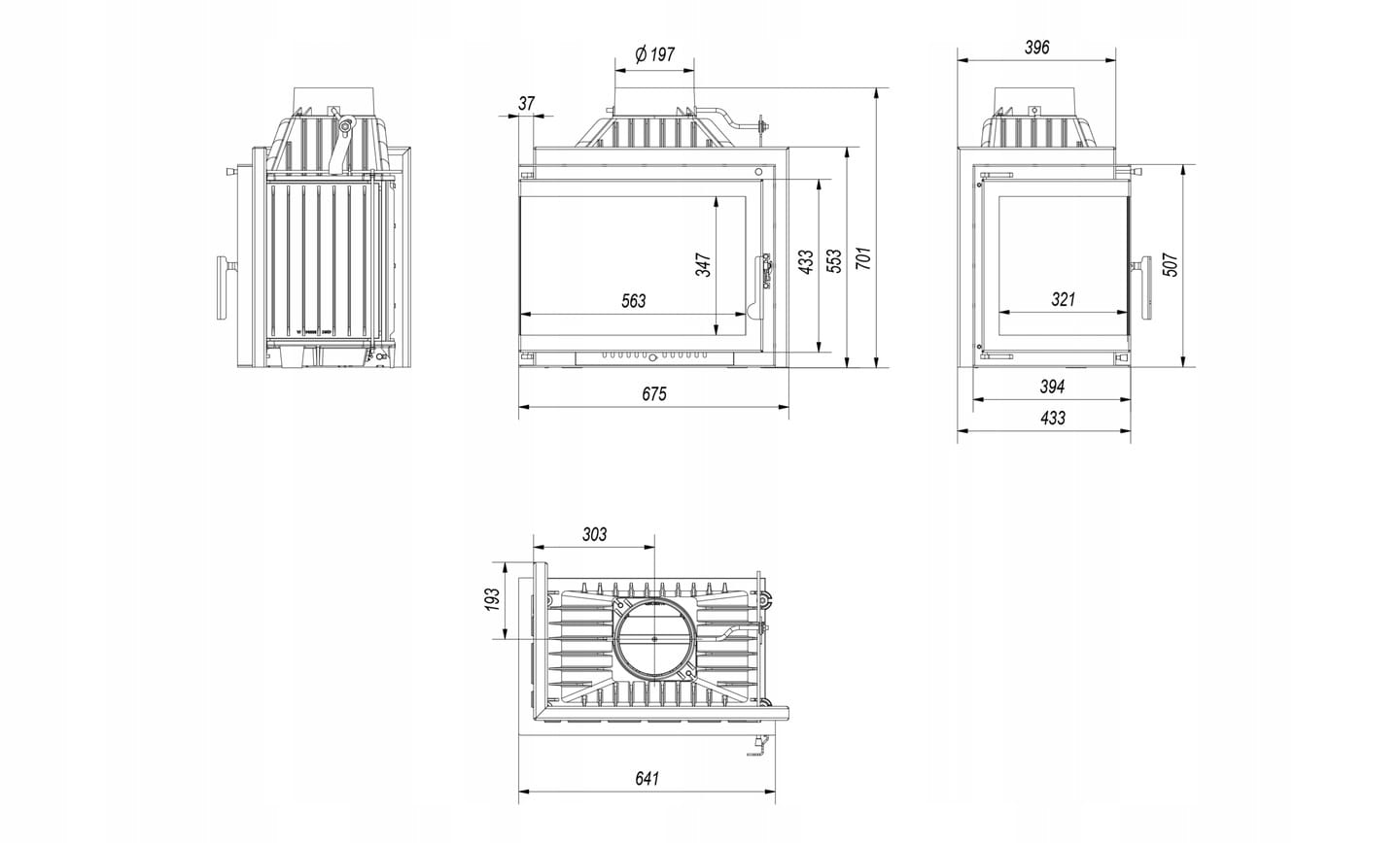 Front wkładu kominkowego wyposażony w ceramikę żaroodporną wytrzymująca temperaturę do 660°C. Oferowane przez Nas szkło posiada certyfikat jakości i bezpieczeństwa.