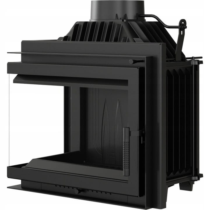 Narożny wkład kominkowy o drzwiach typu BS (szyby łączone).