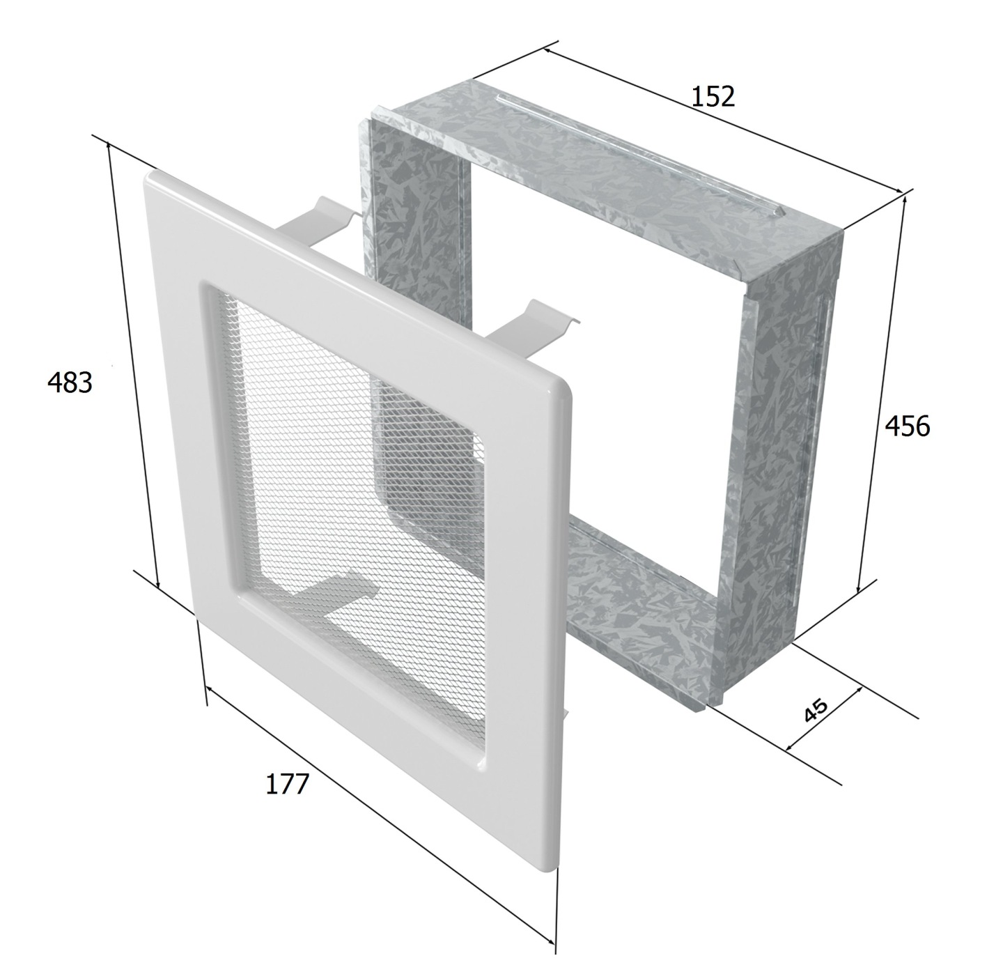 Jest ona instalowana w ścianie lub w czopuchu obudowy kominkowej za pomocą kieszeni oraz giętkich zapinek.