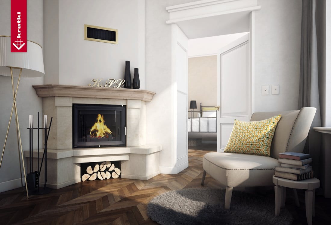 Kratka kominkowa stanowi estetyczne zakończenie kanałów rozprowadzających ciepłe powietrze z kominka.