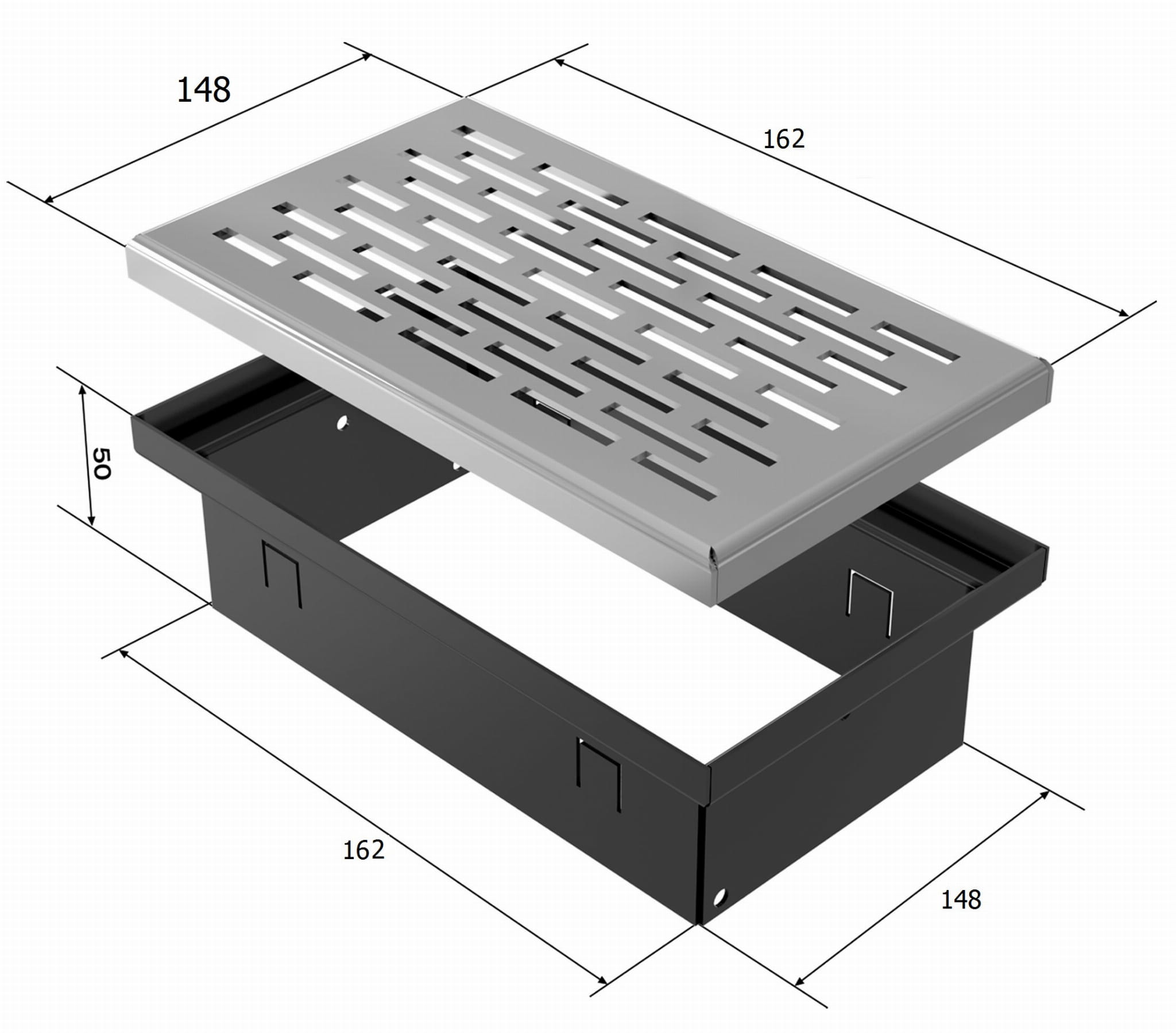 Wzmocniona konstrukcja kratki zapewnia wytrzymałość na nacisk, a górny panel, wykonany ze szlifowanej stali nierdzewnej, gwarantuje odporność na ścieranie i korozję.