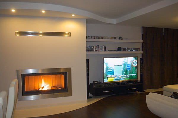 Jest ona instalowana w ścianie lub w czopuchu obudowy kominkowej.