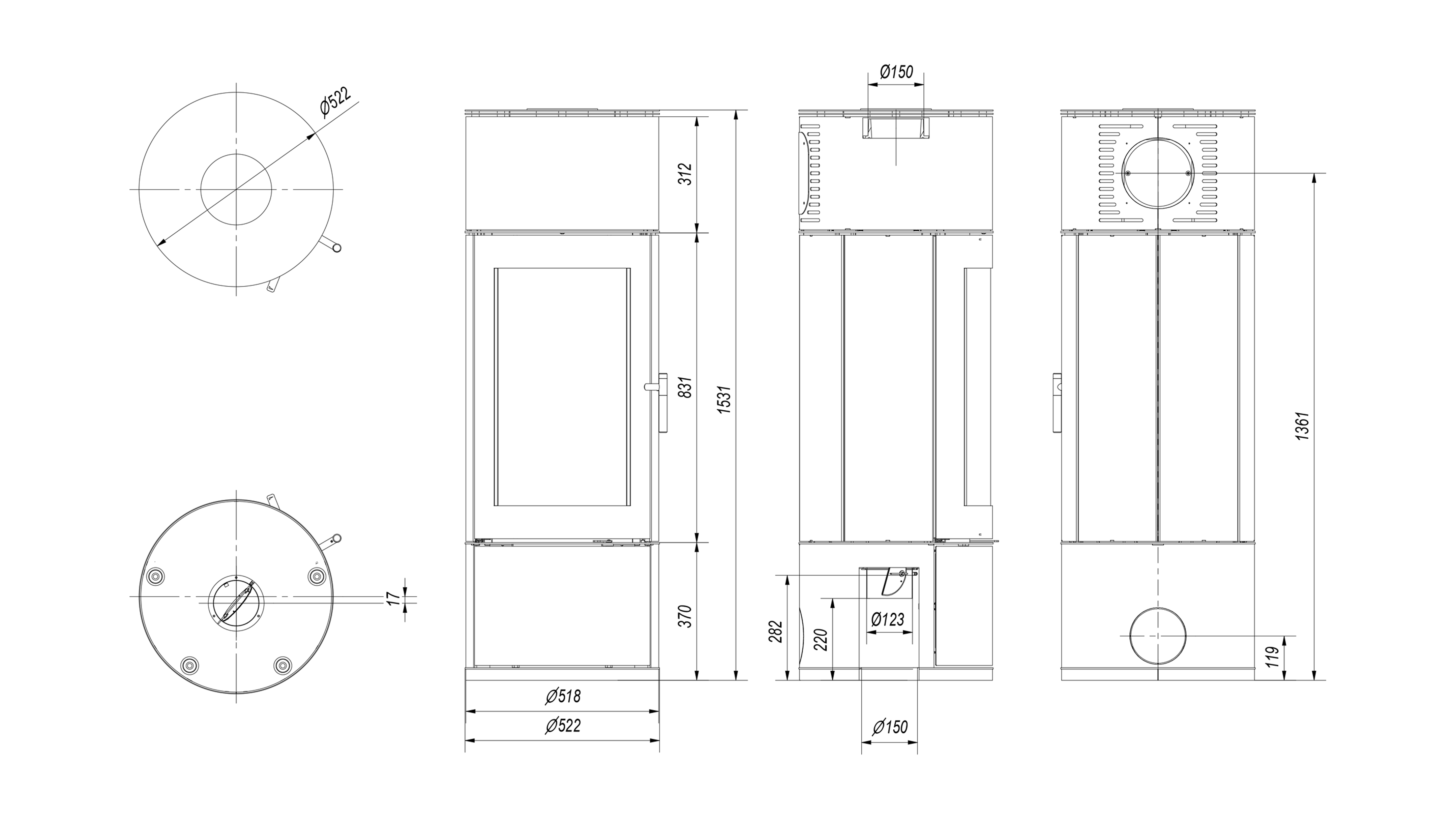 Piec Stalowy Koza ANTARES Ø 150 10 kW