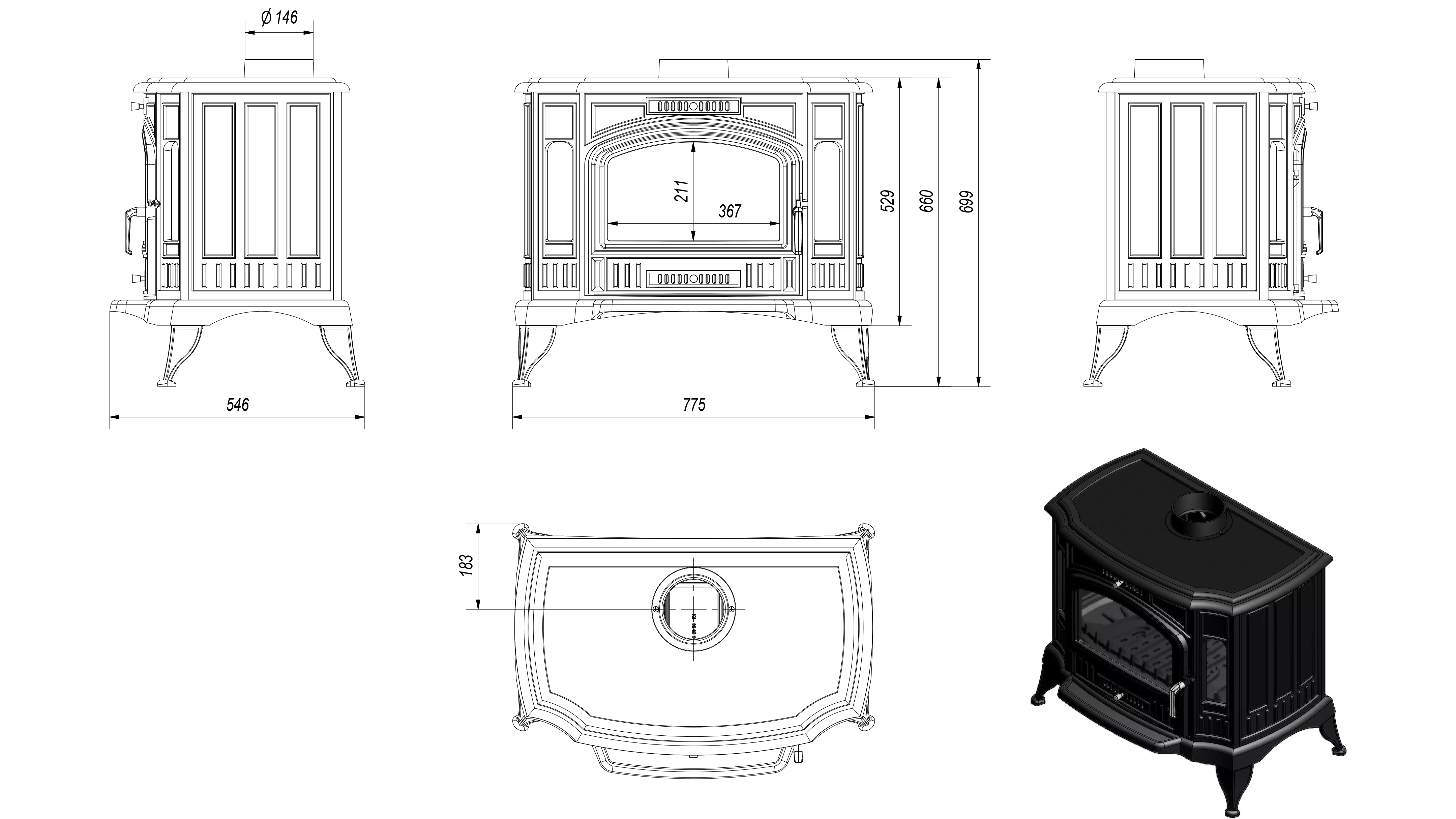 Piec Żeliwny Koza K9 idealnie wpisuje się w konwencję stylowych pomieszczeń i stanowi doskonałe rozwiązanie dla osób ceniących tradycyjną stylistykę. Koza spełnia wymagania Ekoprojektu. Klasyczny front pieca wyposażony w ceramikę żaroodporną wytrzymującą temperaturę do 660°C.